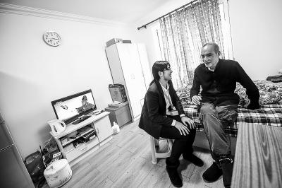 在朝阳区汇鸿家园公租房里,公租房保障人员正在向老龄租户李先生征求意见。 记者 邓伟摄